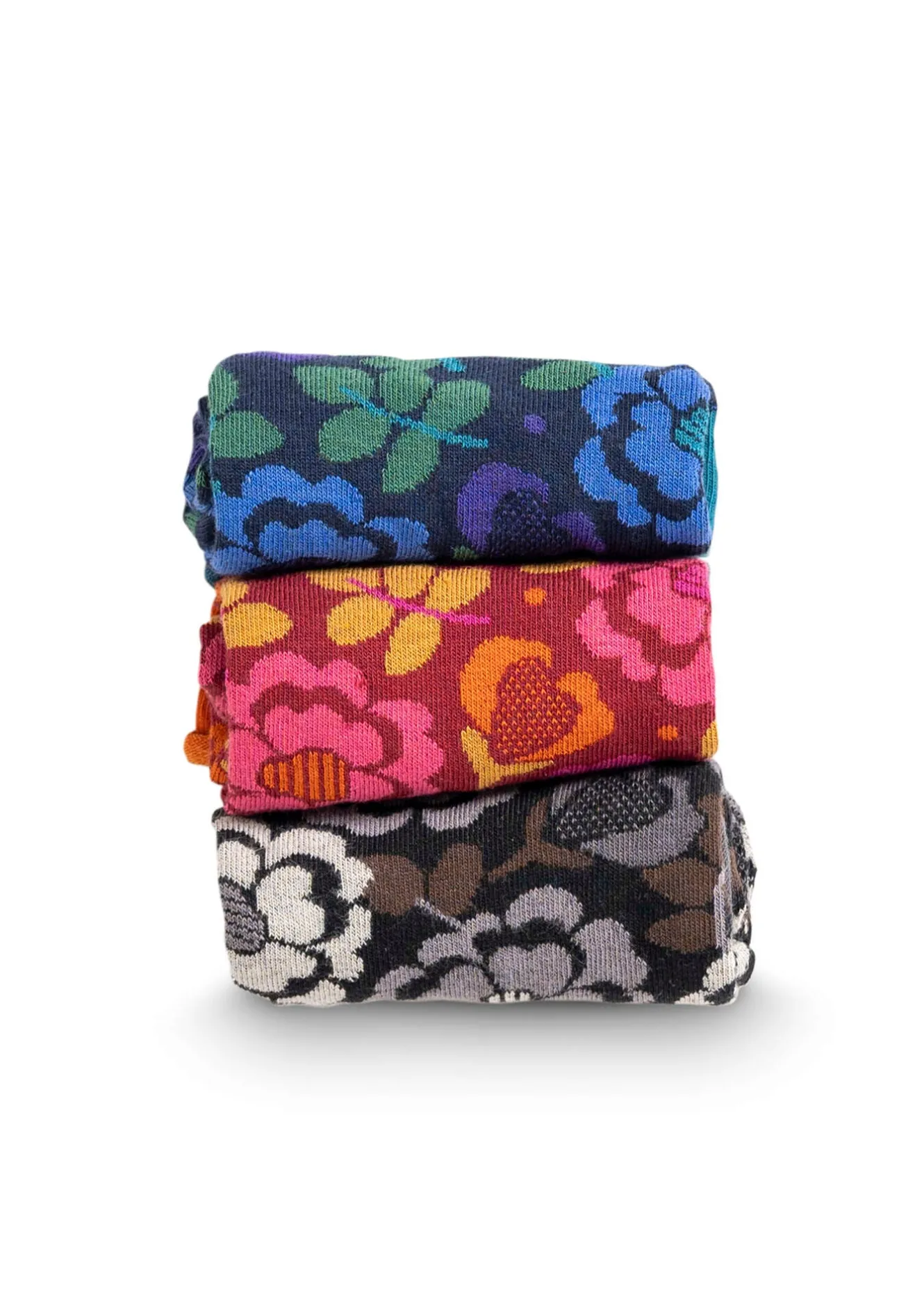 Mjuk och skön strumpa, med fint rosmotiv. Fin och bekväm rullkant, i accentfärg upptill.