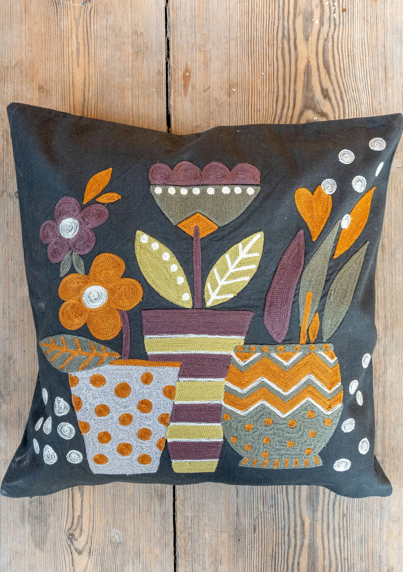Gudrun Sjödén Broderat kuddfodral ”Flower pots” i ekologisk bomull